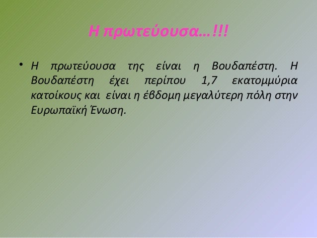 Ουγγαρια Πρωτευουσα / Oyggaria : Συνορεύει β με τη σλοβακία, βα με την ουκρανία, α με τη ρουμανία, ν με τη σερβία μαυροβούνιο, την κροατία και τη σλοβενία και δ με την.